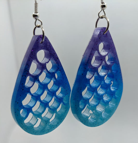 Purple, Blue & Teal Fishnet Teardrop Earrings