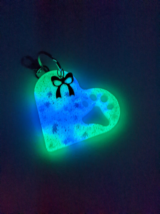 Blue & Green Leaf Glow Paw Prints on My Heart