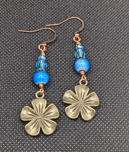 Sold outBlue Crystals and Hibiscus Earrings