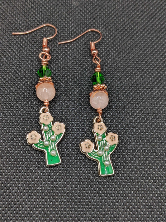 Cactus and Rose Quartz Earrings