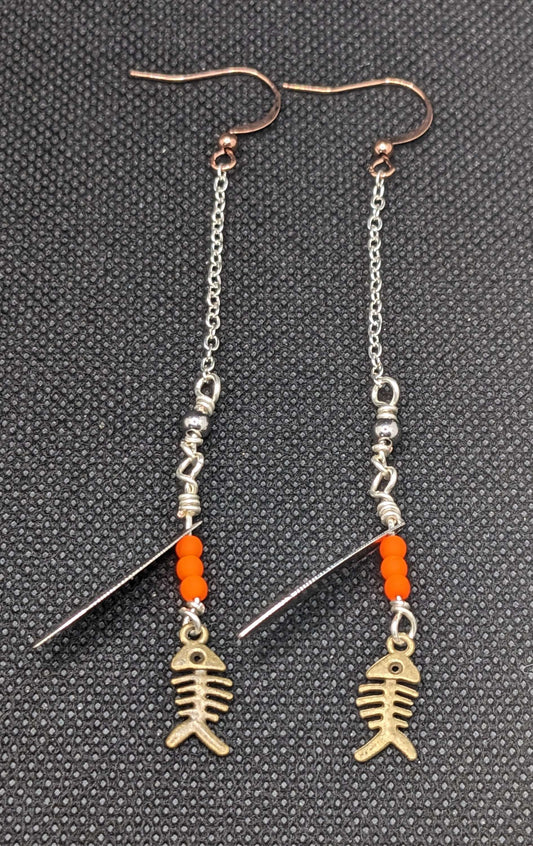 Bonefish on Neon orange Spinner Earrings
