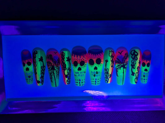 Coffin Skulls & palm tree Nails Glue on