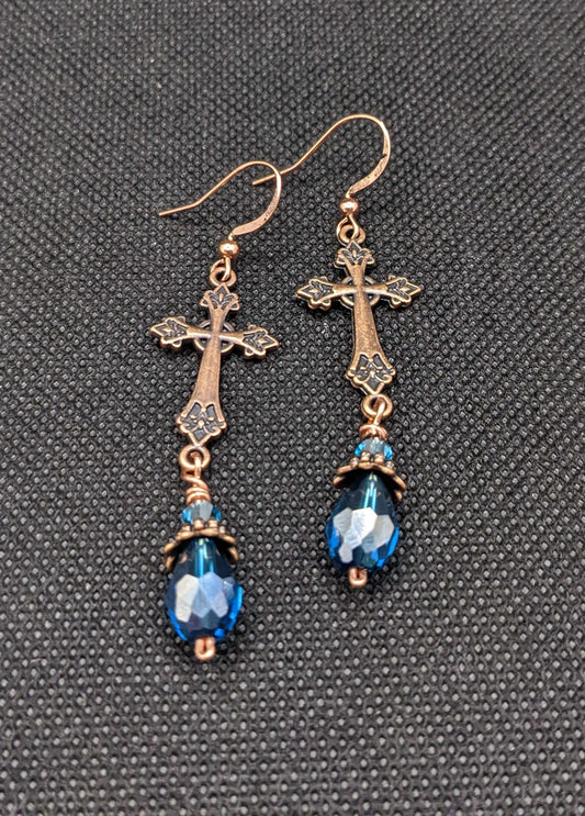 Crosses & Blue Crystal Earrings