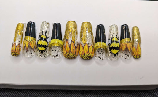 Coffin Honey Bee Nails Glue on