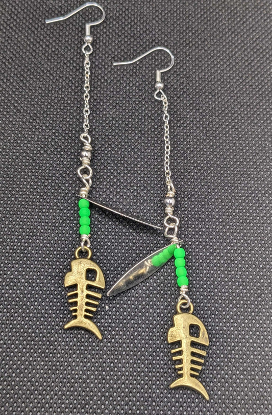 Bonefish on Neon green Spinner Earrings
