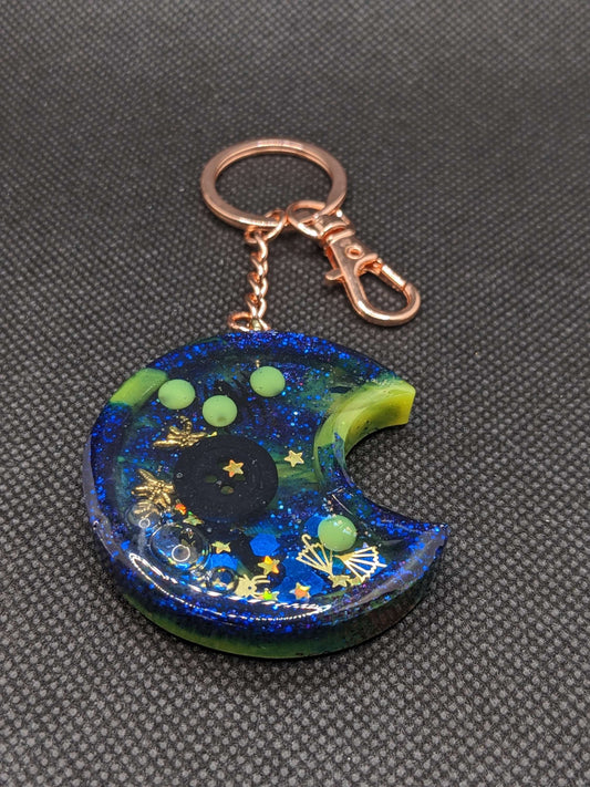 Blue & Orange Football moon Shaker Keychain
