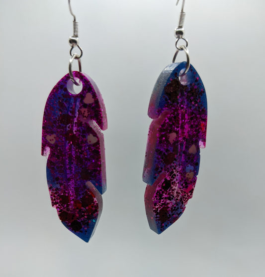 Dark Pink & Purple Glitter Feather Earrings