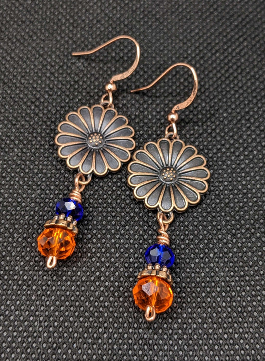 Blue & Orange Daisy Earrings