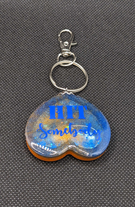 Blue & Orange Football heart Shaker Keychain