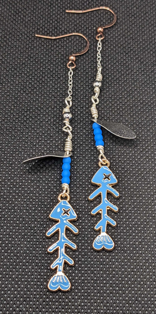 Bonefish on Neon blue Spinner Earrings